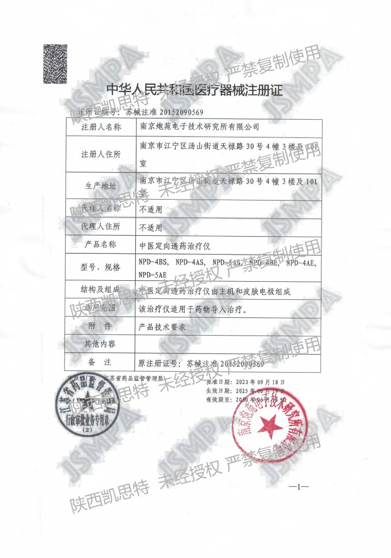 醫(yī)療器械注冊證編號:蘇械注準(zhǔn)20152090569